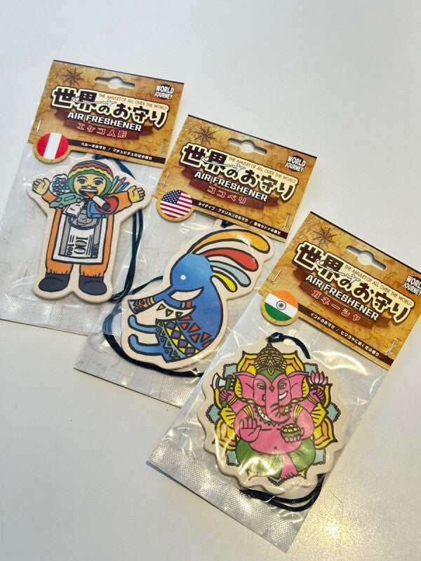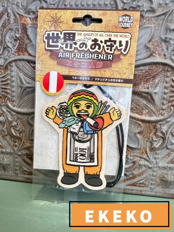 ペルーのマチュピチュの空の香りが漂う、エケコ人形お守りエアフレッシュナー!エケコ人形は、アンデス高地に伝わる**願い事を叶える「福の神」**として有名。
