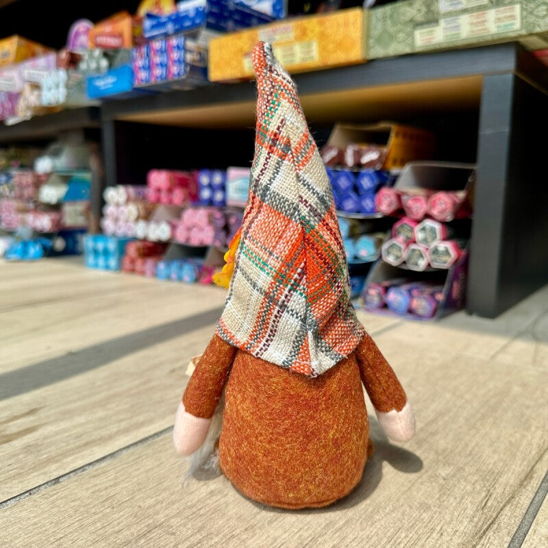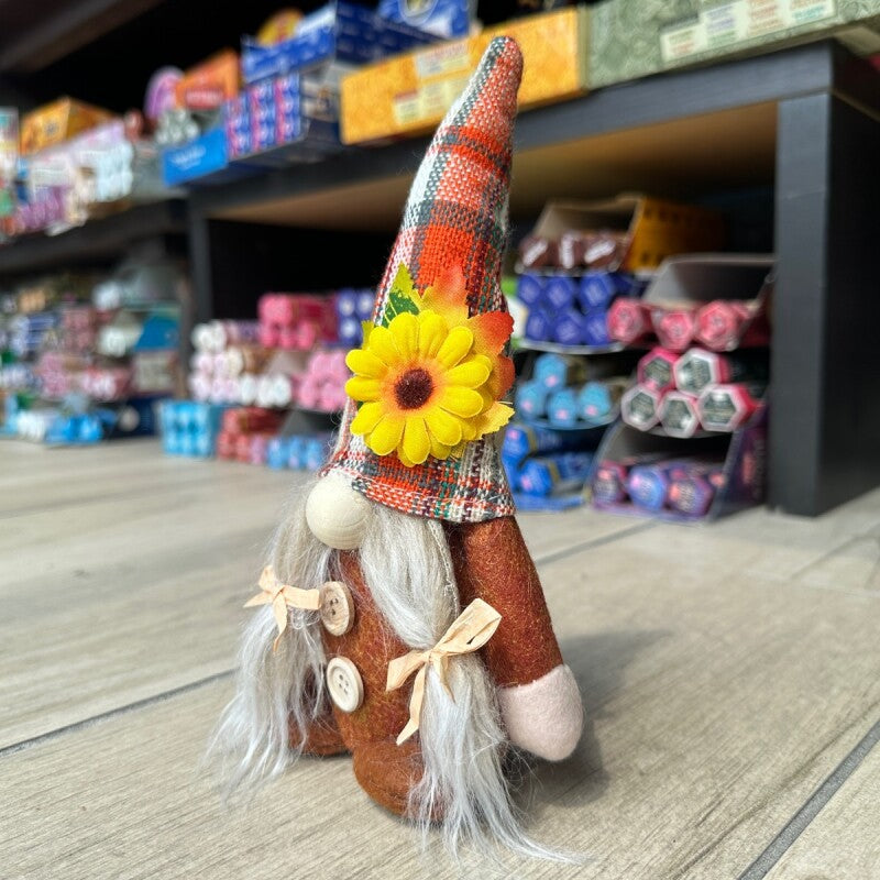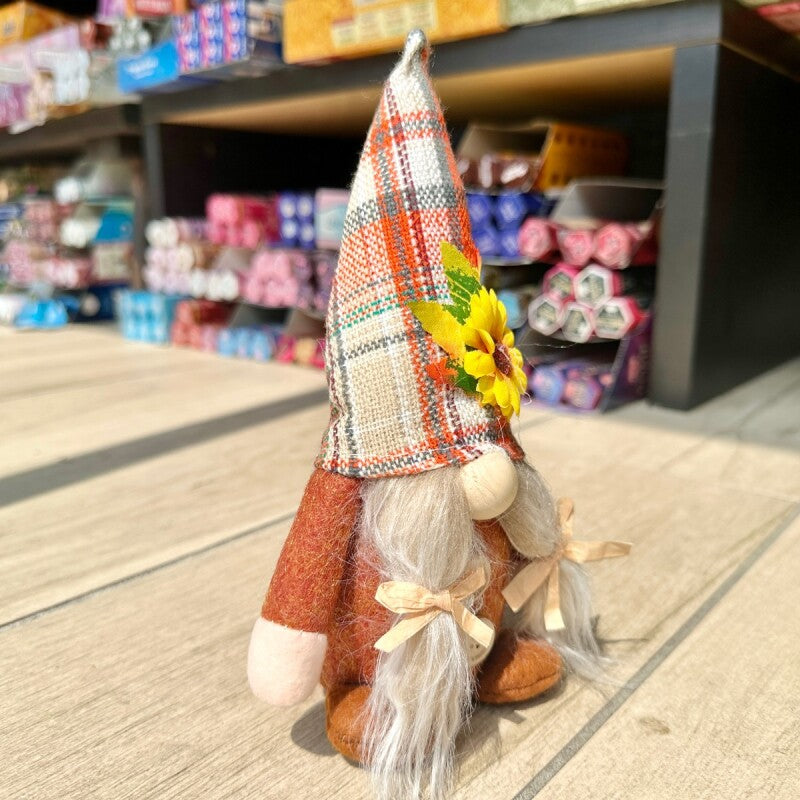 この特別なオータムノームは、金運と幸運の象徴であるひまわりをあしらった、とんがり帽子とふわふわのおさげがチャームポイント。お尻の部分に重さがあるので、お家や部屋、車など、どこにでも安定して飾れます。