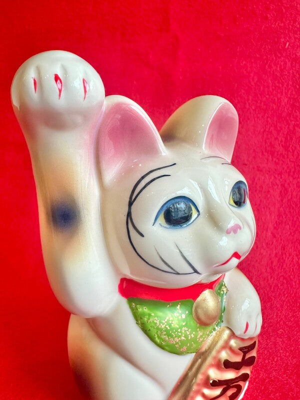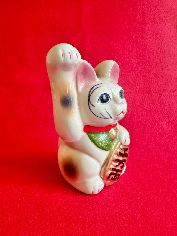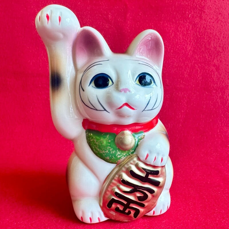 金運・財運UPや商売繁盛の願いを込めて、右手をちょこんと上げています。愛らしい表情で、たくさんの幸せを呼び込んでくれそう。