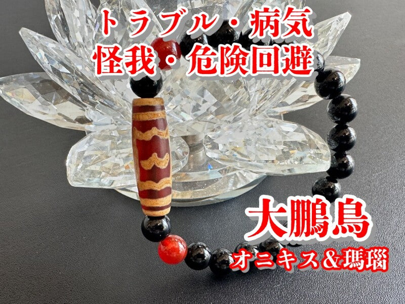 トラブル・病気・怪我・危険回避!大鵬鳥天珠ブレスレット オニキス&瑪瑙