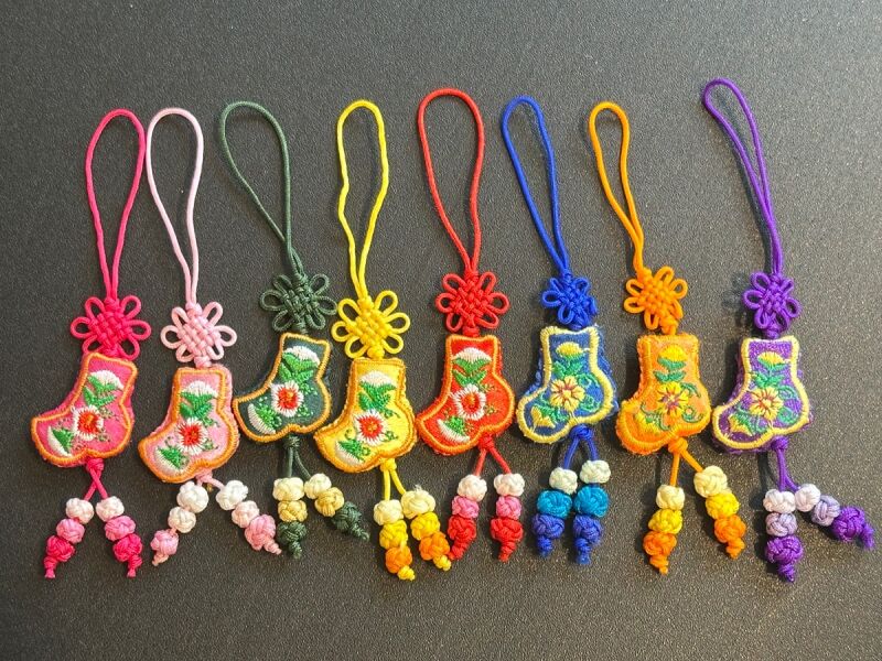 韓国では、ポソンを贈ることは「いつまでも健康でいられますように」という願いが込められています。元気でないとポソンを履けない、という言い伝えからきており、さらに邪気を払う意味もあると言われています。まさに、言うことなしの大変縁起の良いストラップなんです!