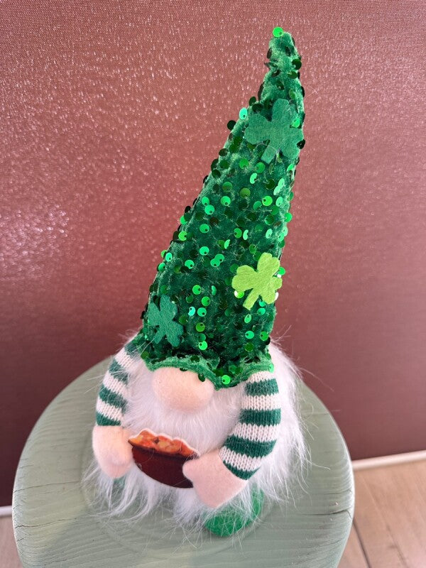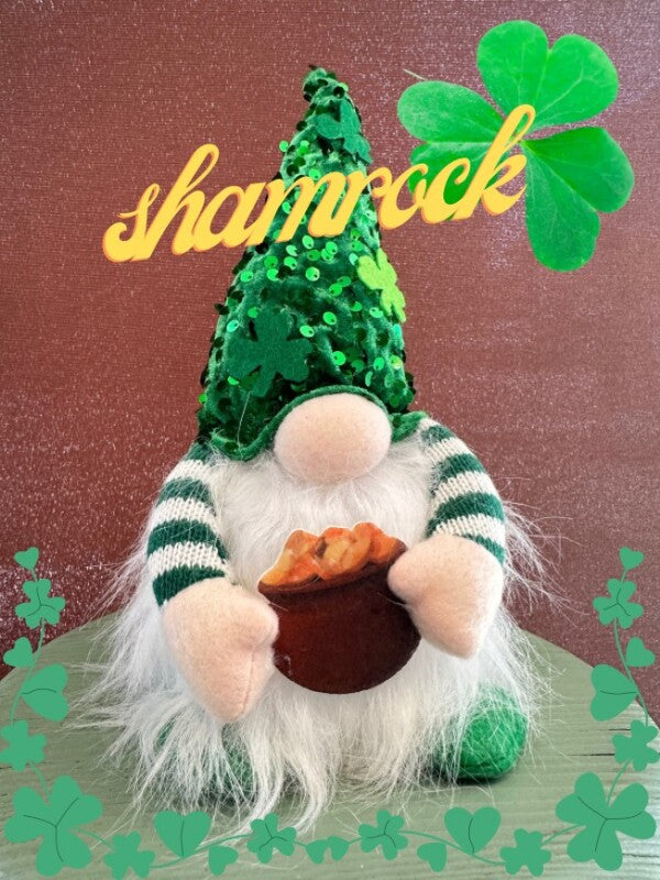 緑のとんがり帽子: シャムロック(三つ葉のクローバー)やスパンコールがあしらわれた、幸運のシンボル。