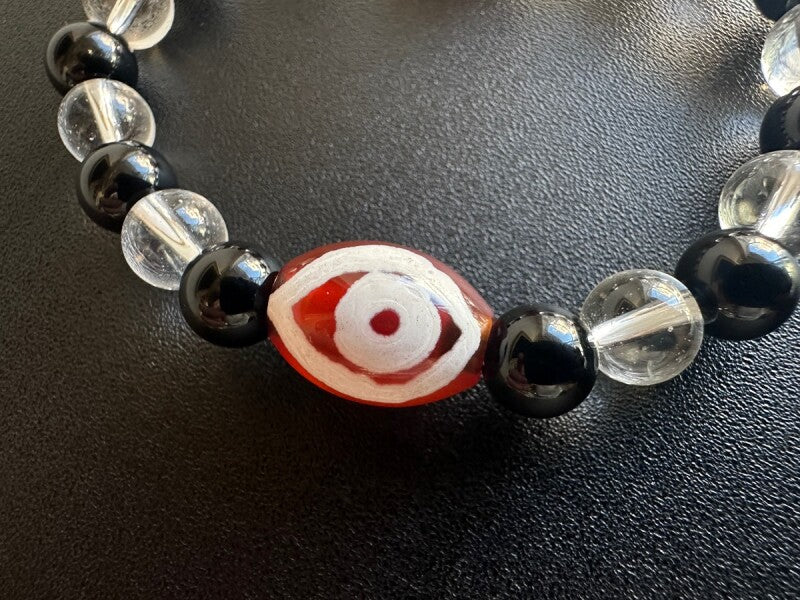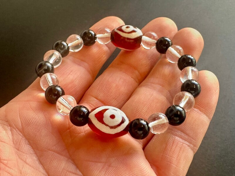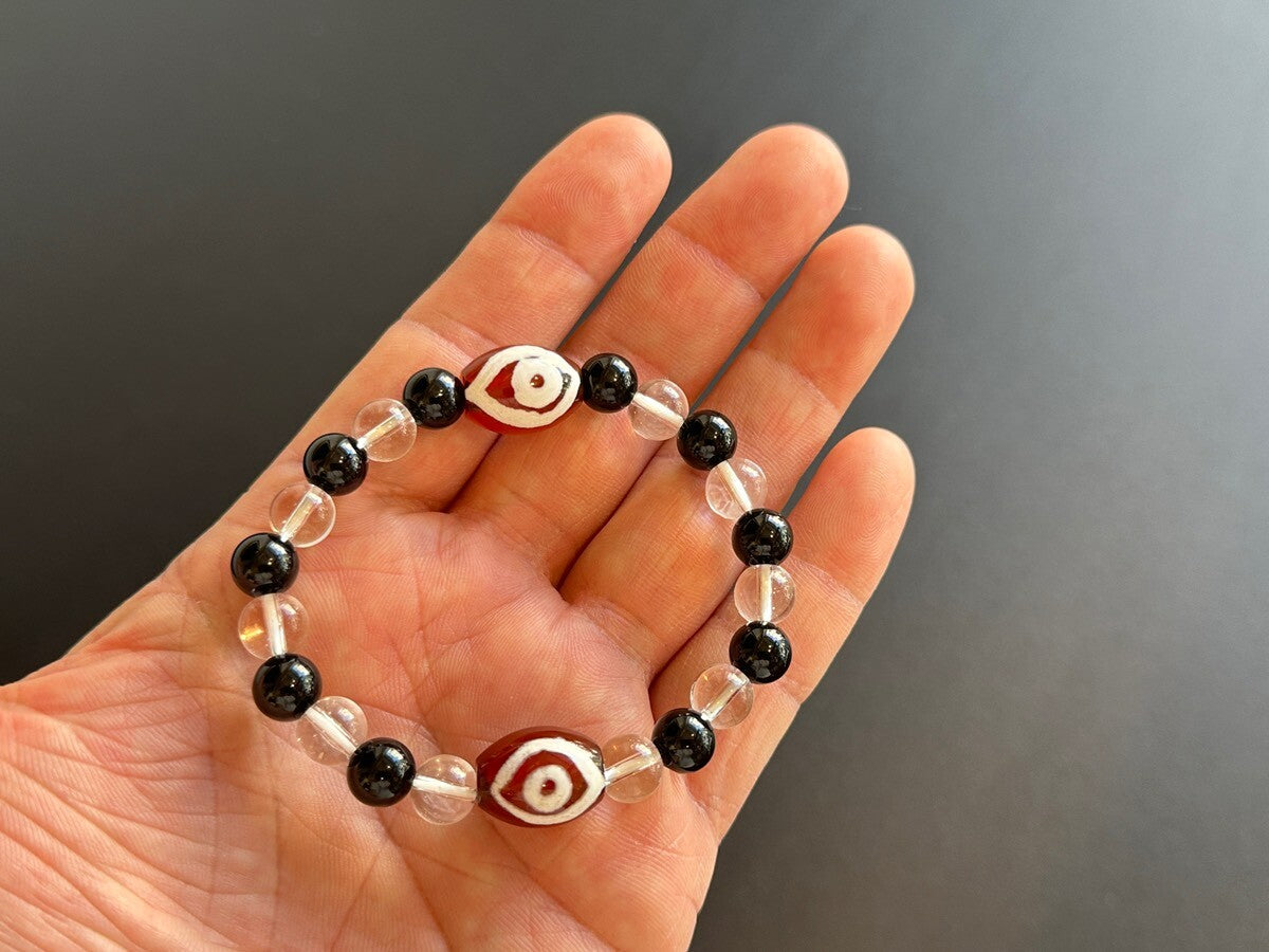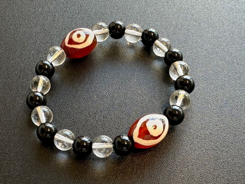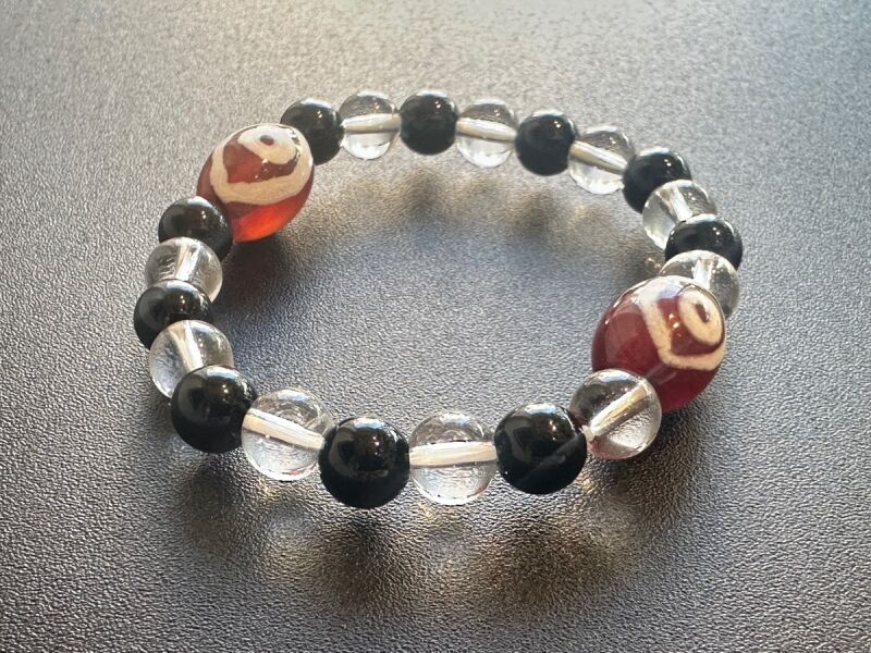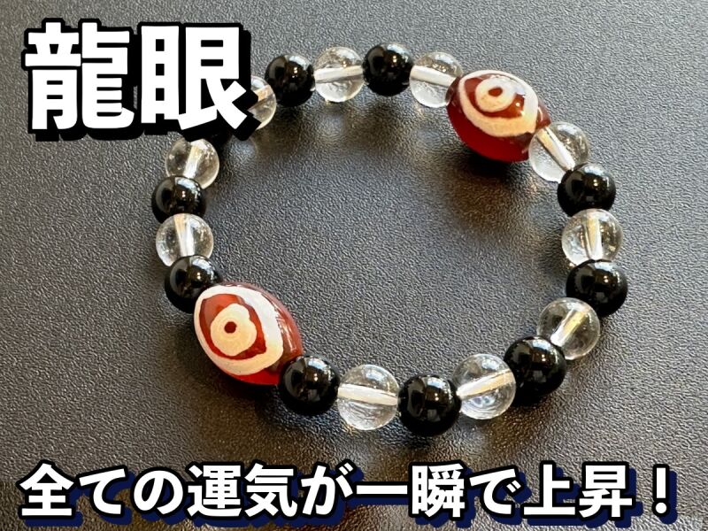 全ての運気が一瞬で上昇!成功と富をもたらす!「天珠の王」龍眼天珠&オニキス&水晶 ブレスレット