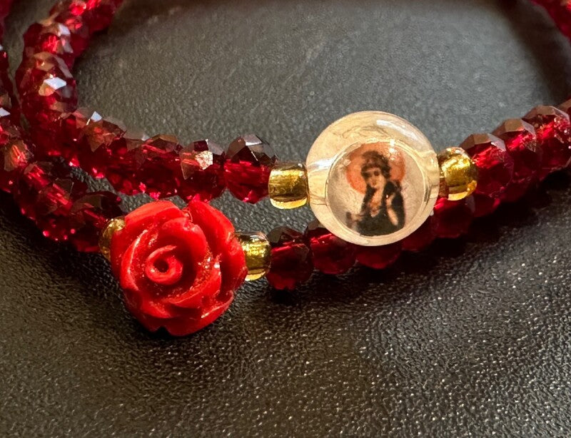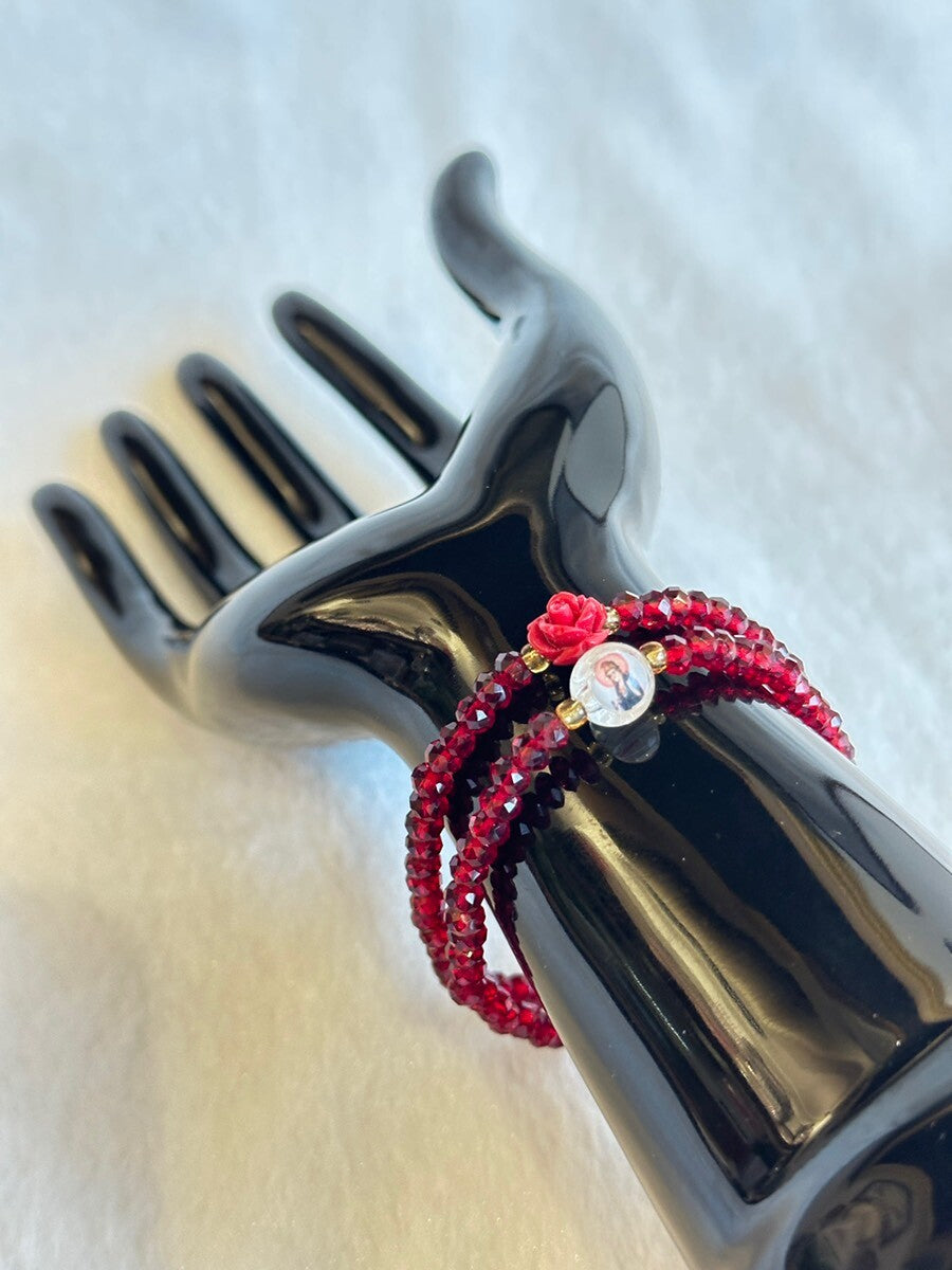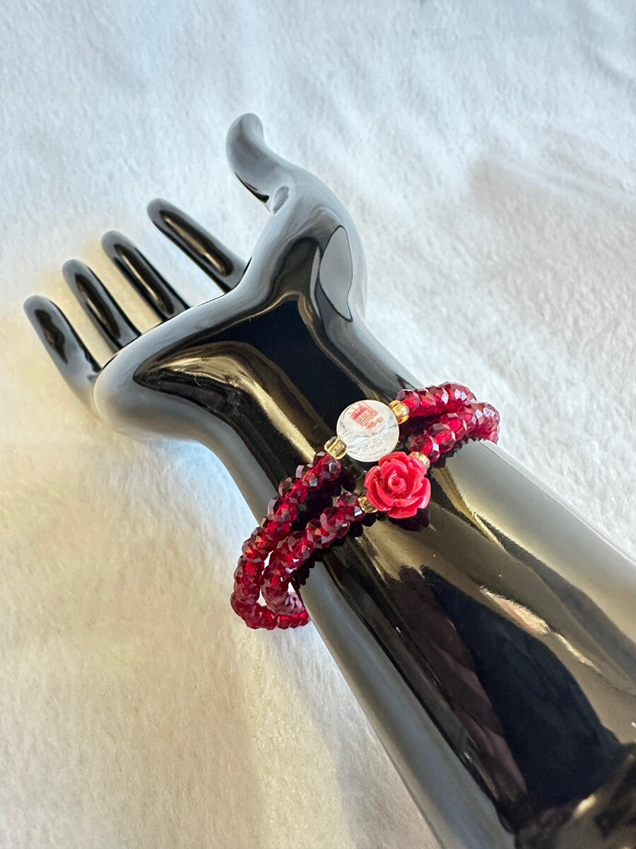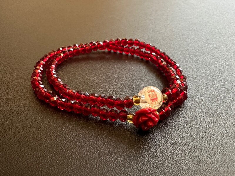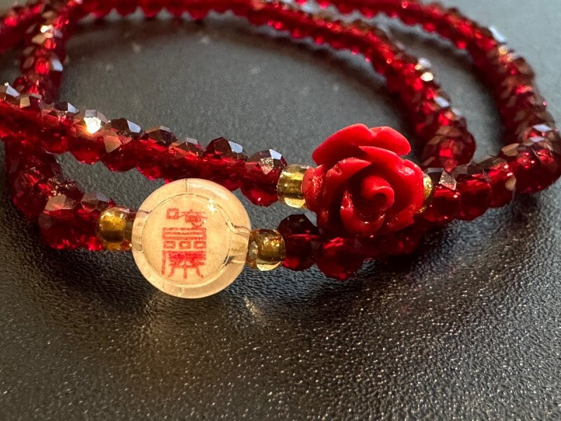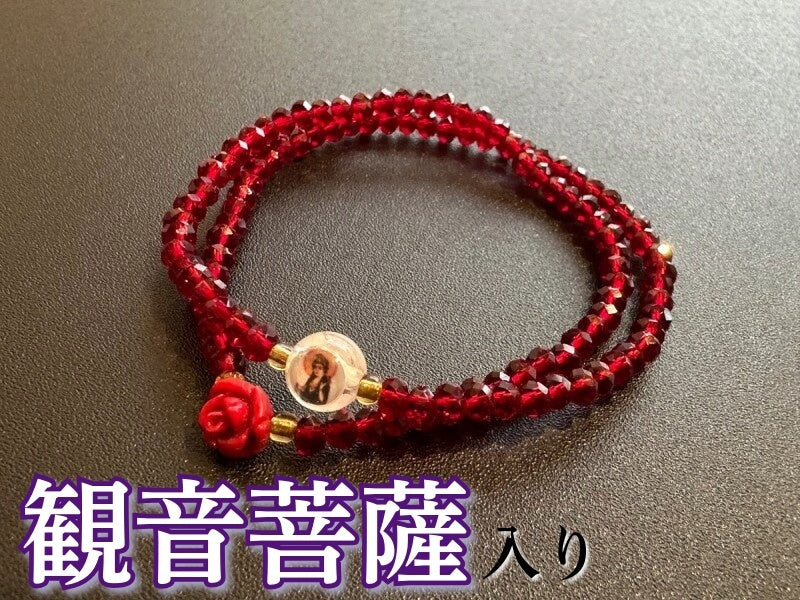 強い守護と幸福を願い 願望成就へ導く!韓国の観音菩薩(관세음보살)様&霊符(プジョク)薔薇ブレスレット 赤