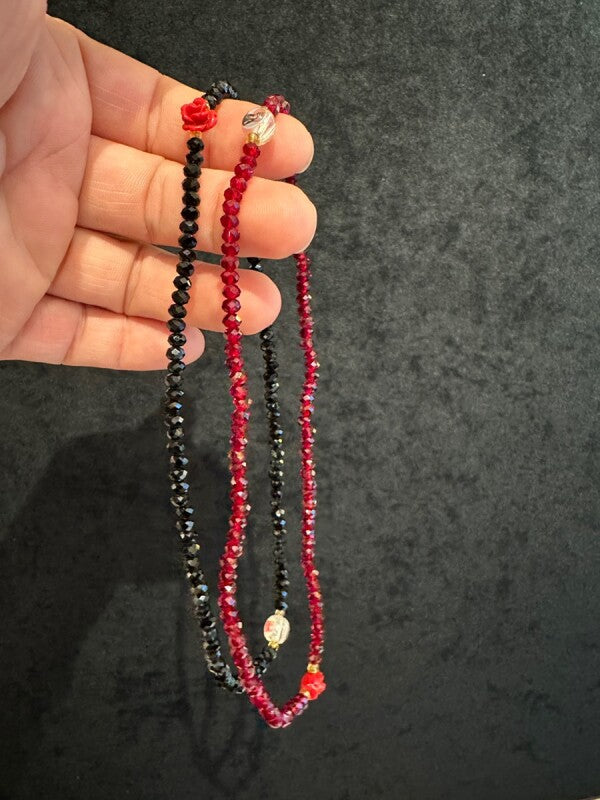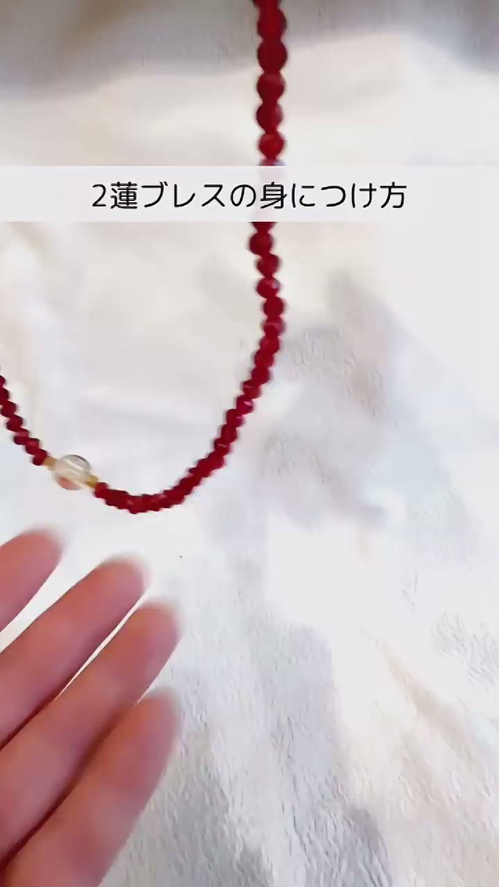 輝くオニキス(約34cm)を2連で着ける、ファッション性の高いブレスレット。韓国の観音菩薩様、幸運を招く霊符、情熱の赤い薔薇が、あなたの願望成就を力強くサポートします。