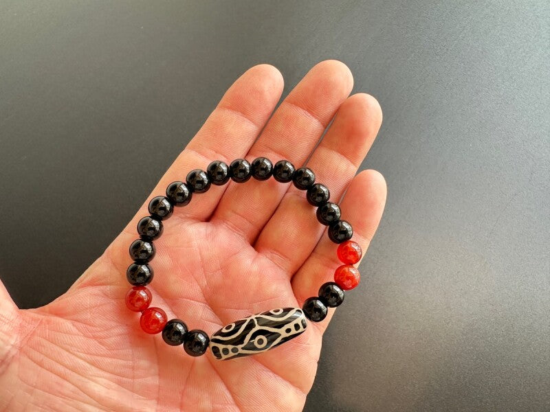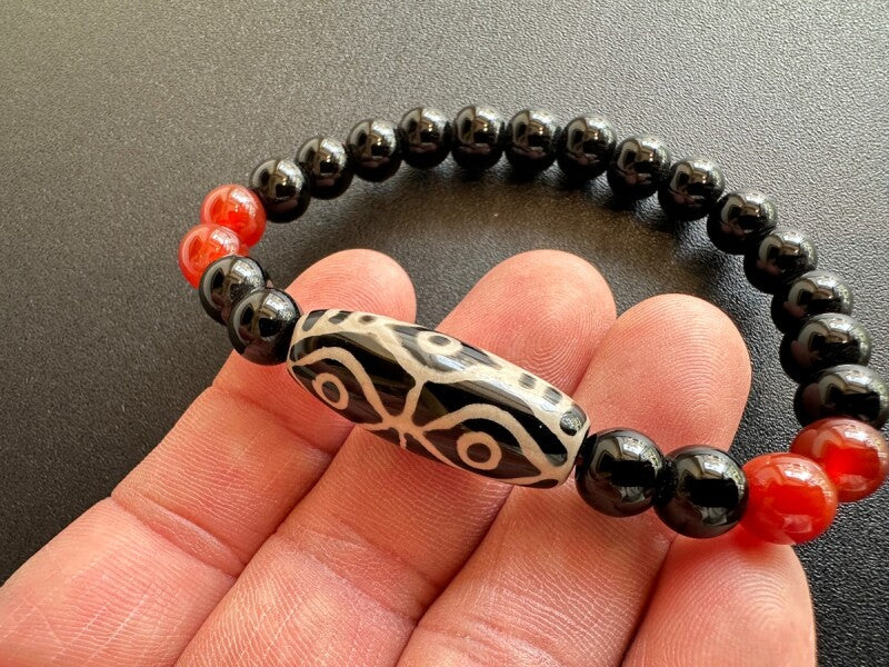 悩みや迷いから解放され、精神を安定させる!六眼天珠ブレスレット オニキス&瑪瑙