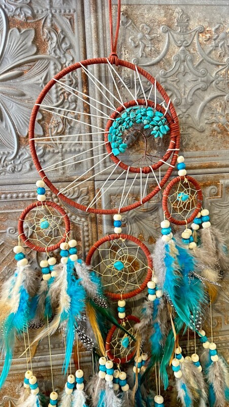 悪いものを消滅させ夢を掴む!ドリームキャッチャーラージ ターコイズツリー