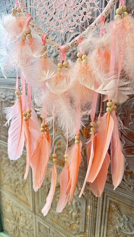 愛を掴まえる!直径17.5センチ 悪いものを消滅させ夢を掴む ドリームキャッチャーラージハート ピンク