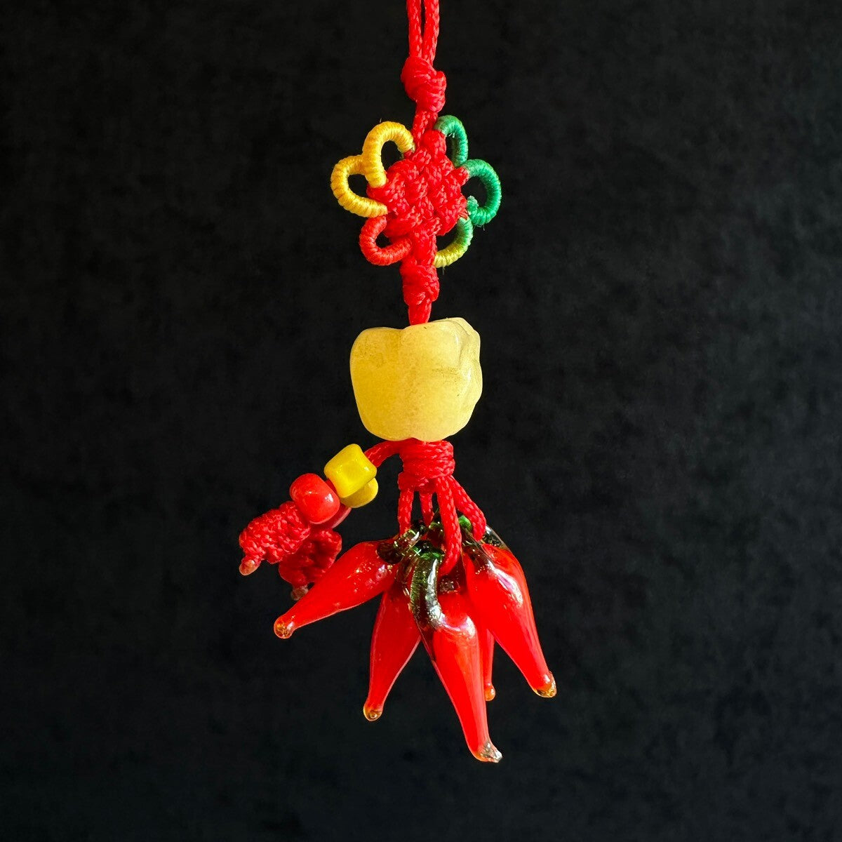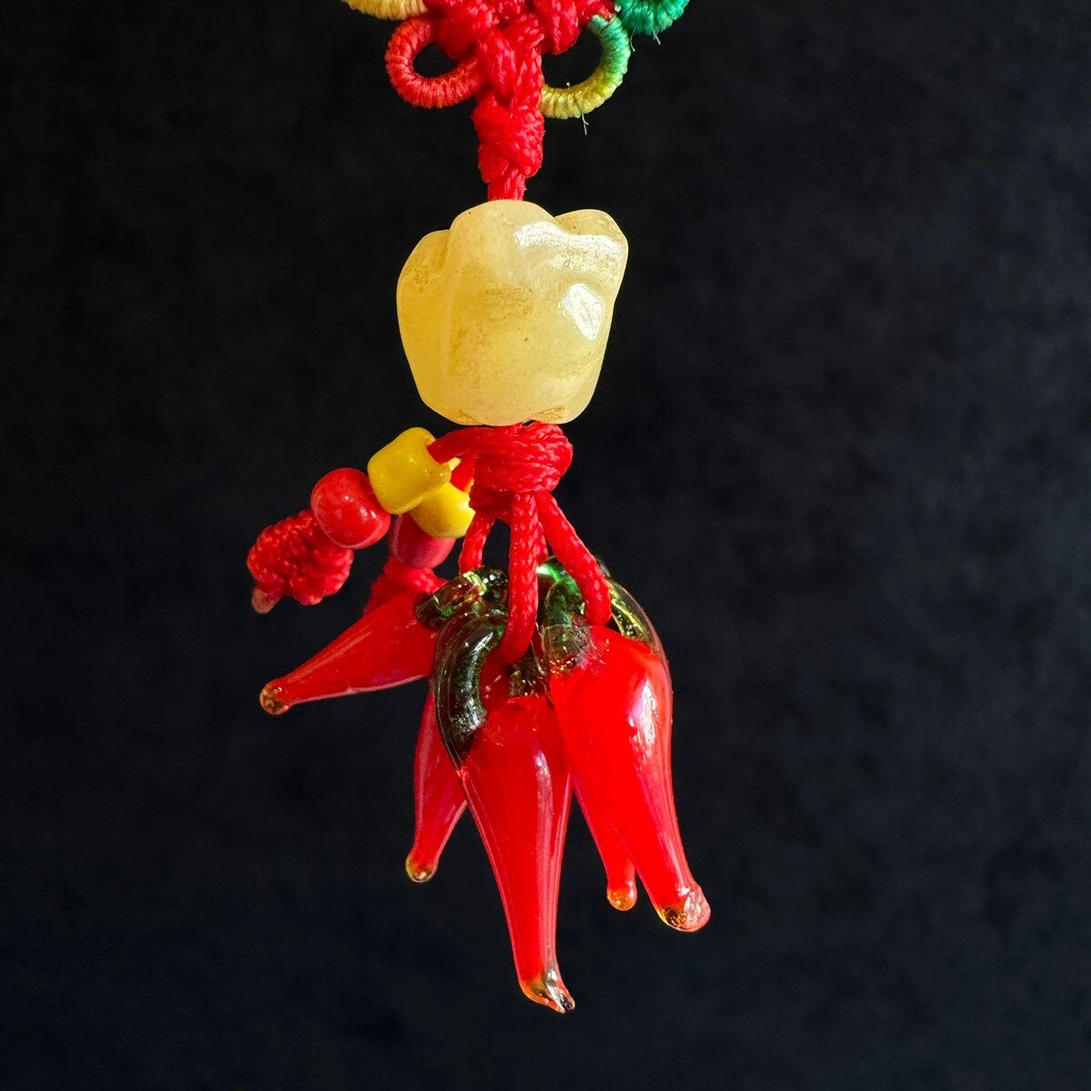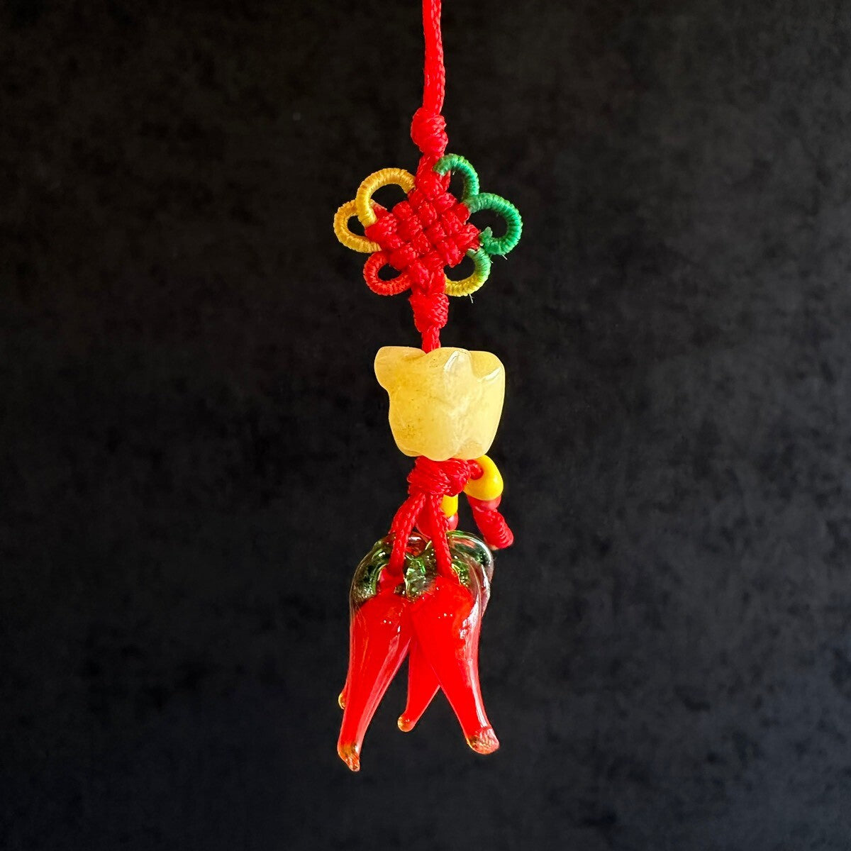 🌶️ 落ちろ厄!本場韓国の唐辛子ストラップ with 金運豚&イエロー翡翠 🐖