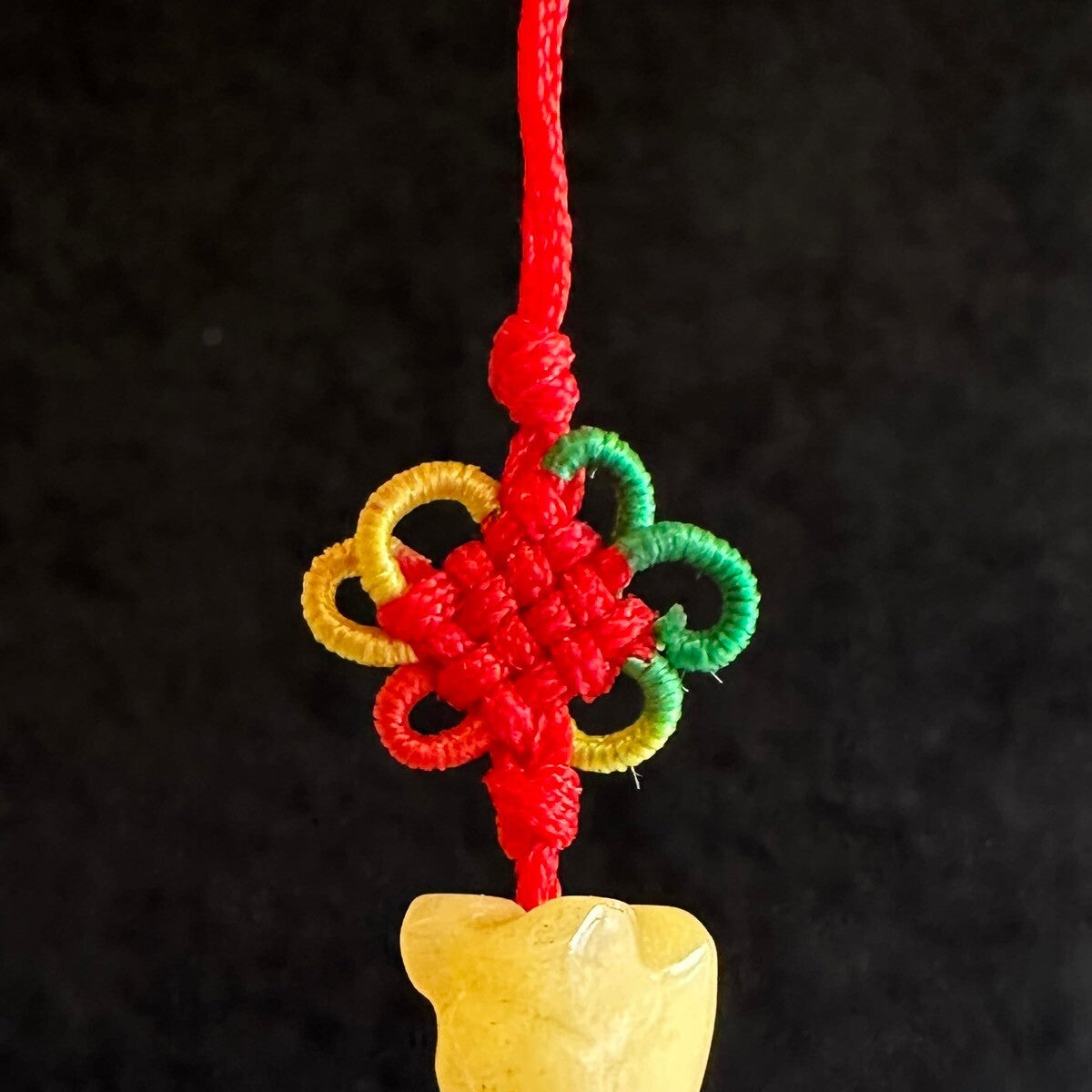 落ちろ厄!唐辛子ストラップ⭐富と繁栄 イエロー翡翠🐖金運の豚付き