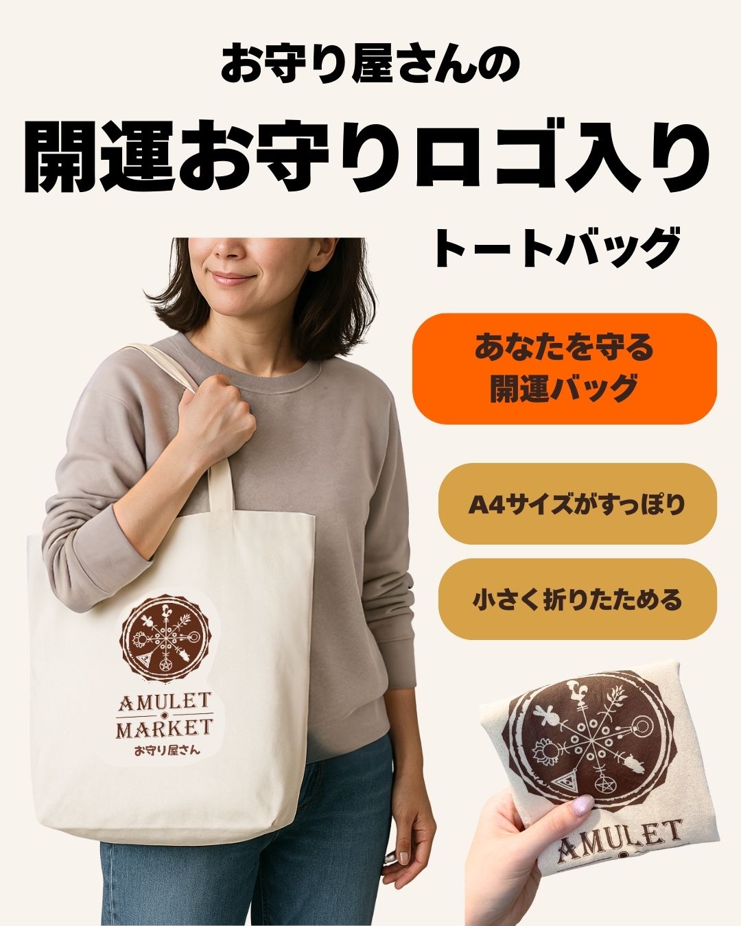 開運!【お守り屋さんオリジナル】お守りロゴ入りトートバッグ